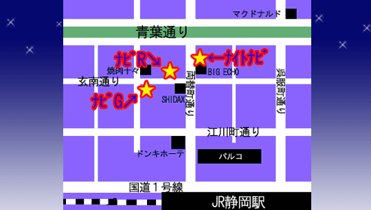 静岡1の繁華街、両替町と玄南通りのド真ん中!ド派手な外装が目印!